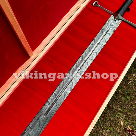 Handmade Sword Viking Sword Damascus Steel Blade Sword With Leather Sheath And Wooden Box