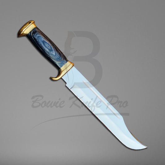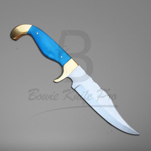 Huning Bowie Knife 440c Steel Blade Brass Guard And Pommel Blue Resin Handle With Knife Sheath VK-222