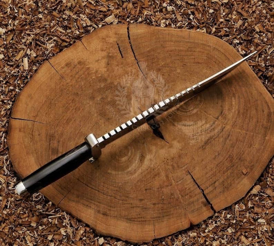 Crocodile Dundee Bowie Knife Sharped Blade Brass Pommel And Guard | Leather And Bull Horn Handle With Knife Sheath VK-223