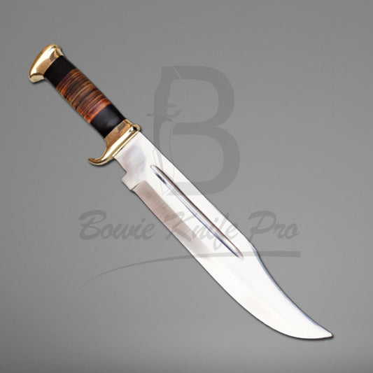 Bowie Knife Pro Brass Guard And Pommel Leather Handle Stainless Steel Blade With Knife Sheath VK-219