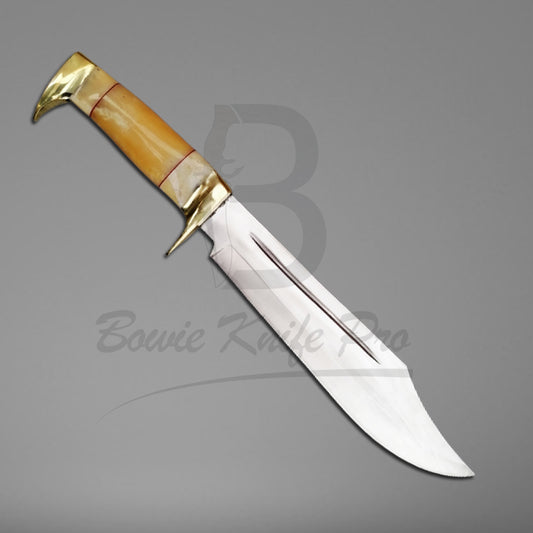 Bowie Knife Pro Steel Blade Bone Handle Brass Guard And Pommel With Knife Sheath VK-215