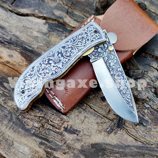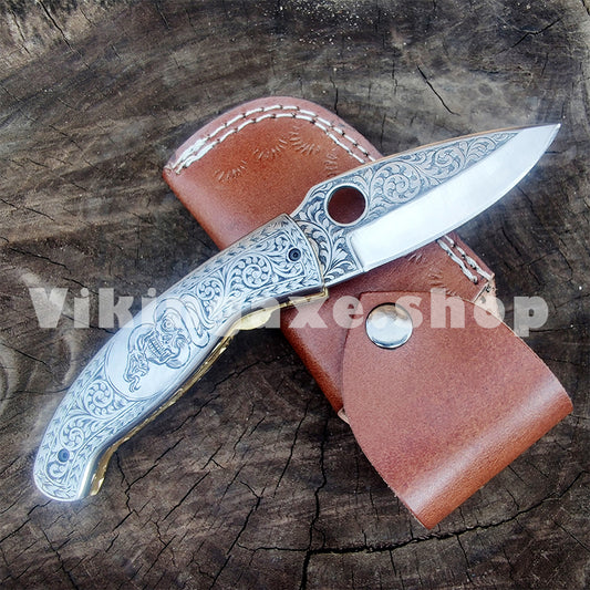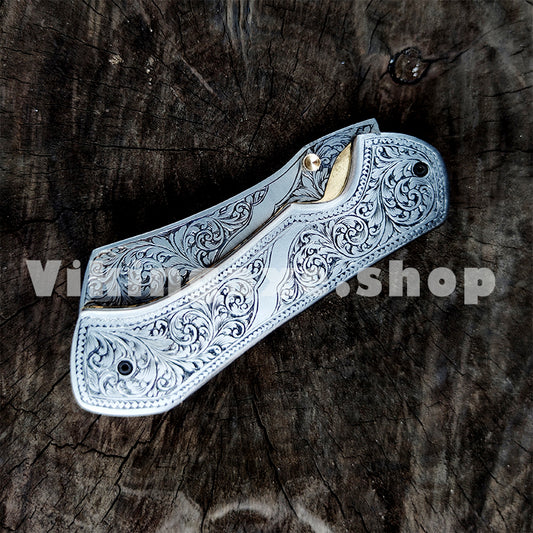 Best Pocket Knife Hand Engraved Folding Knife VA-02