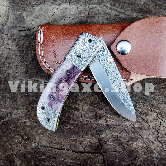 Engraved Pocket Knife Handmade Folding Knife VA-04