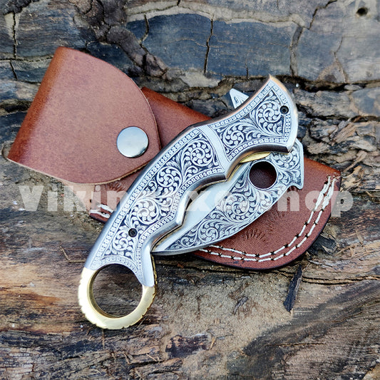 Karambit Pocket Knife Hand Engraved Folding Knife VA-06