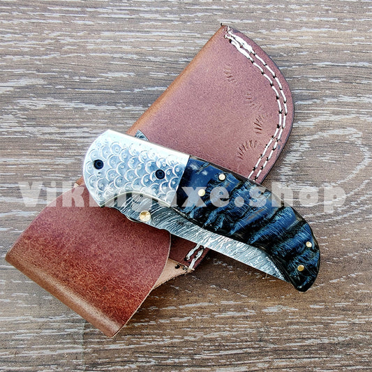 Damascus Steel Pocket Knife Handmade Folding Knife VA-07