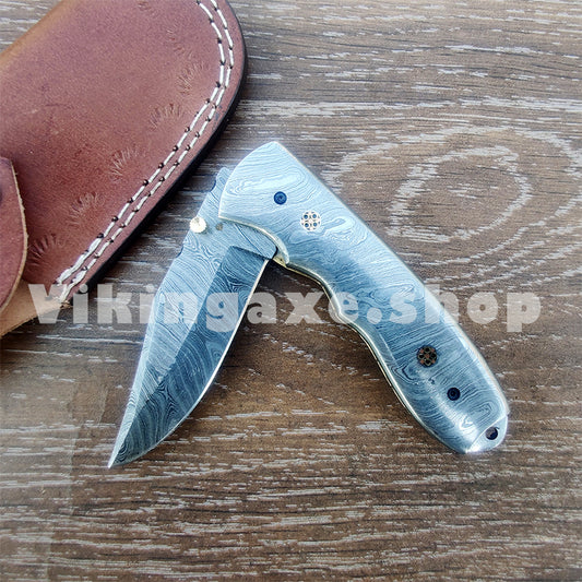 Damascus Steel Pocket Knife Custom Folding Knife VA-09