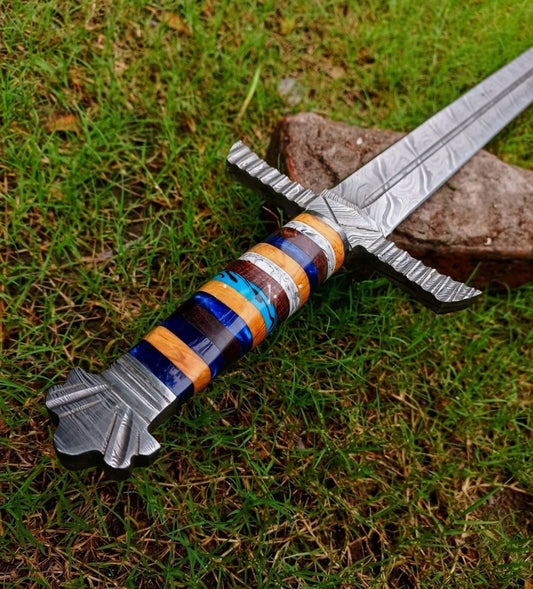Damascus Steel Sword Crafted Handle Viking Sword Sharp Edges With Leather Sheath