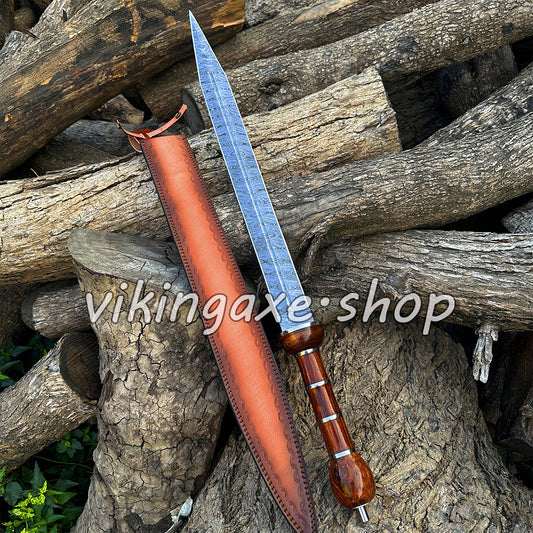 Roman Sword Damascus Steel Gladius Sword Rose Wood Handle With Leather Sheath