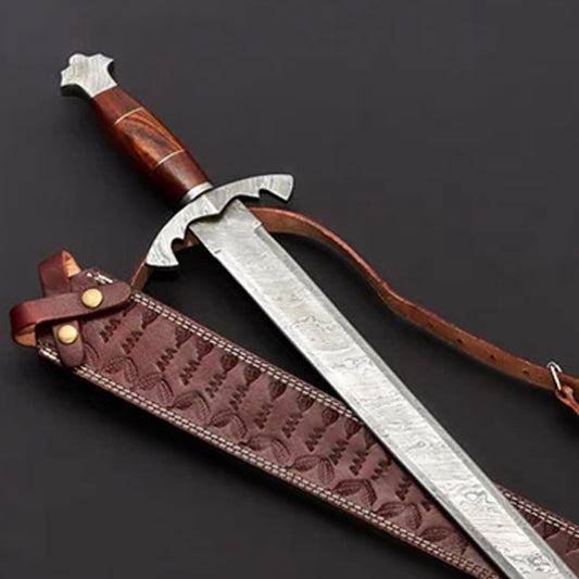 King Solomon Crusader Sword - Damascus Steel Sword With Leather Sheath