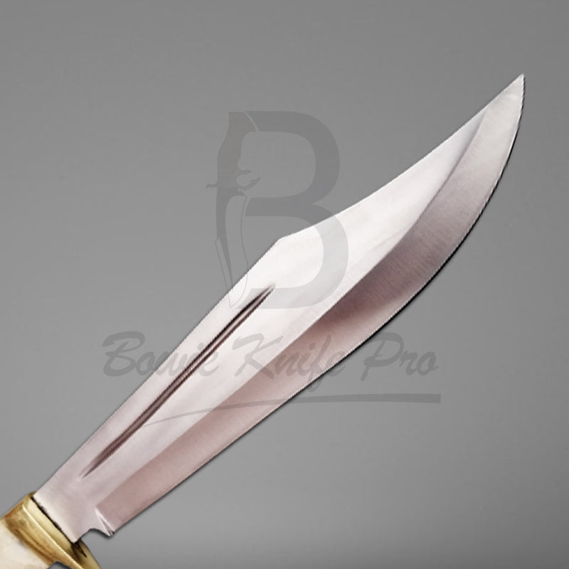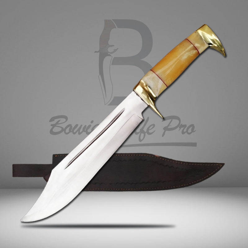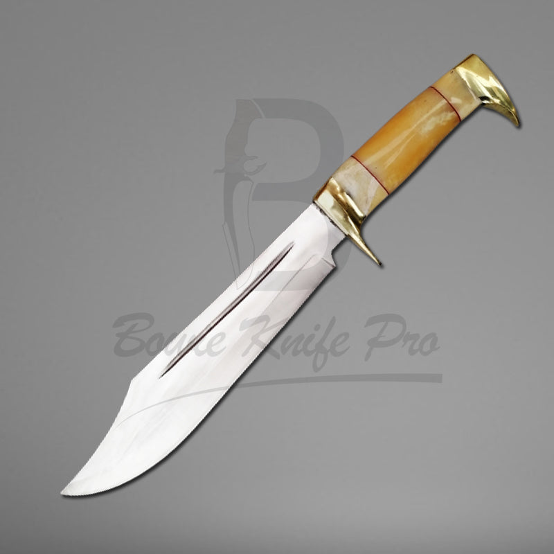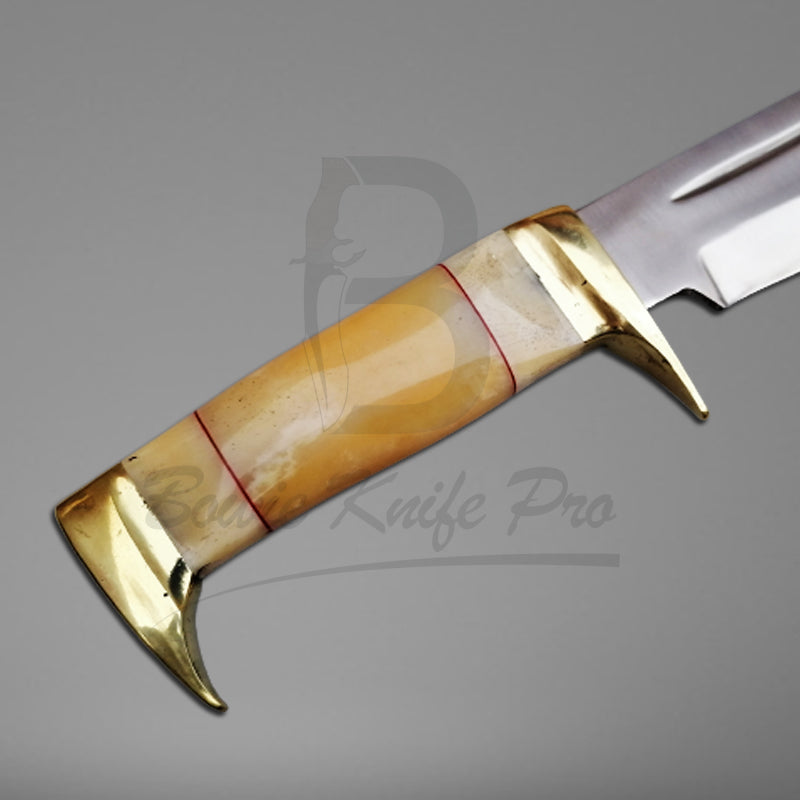 Bowie Knife Pro Steel Blade Bone Handle Brass Guard And Pommel With Knife Sheath VK-215