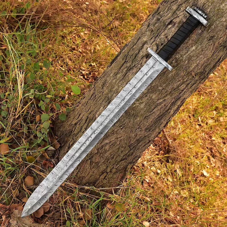 Custom Damascus Steel Viking Sword Sharp Edges Damascus Steel Guard And Pommel