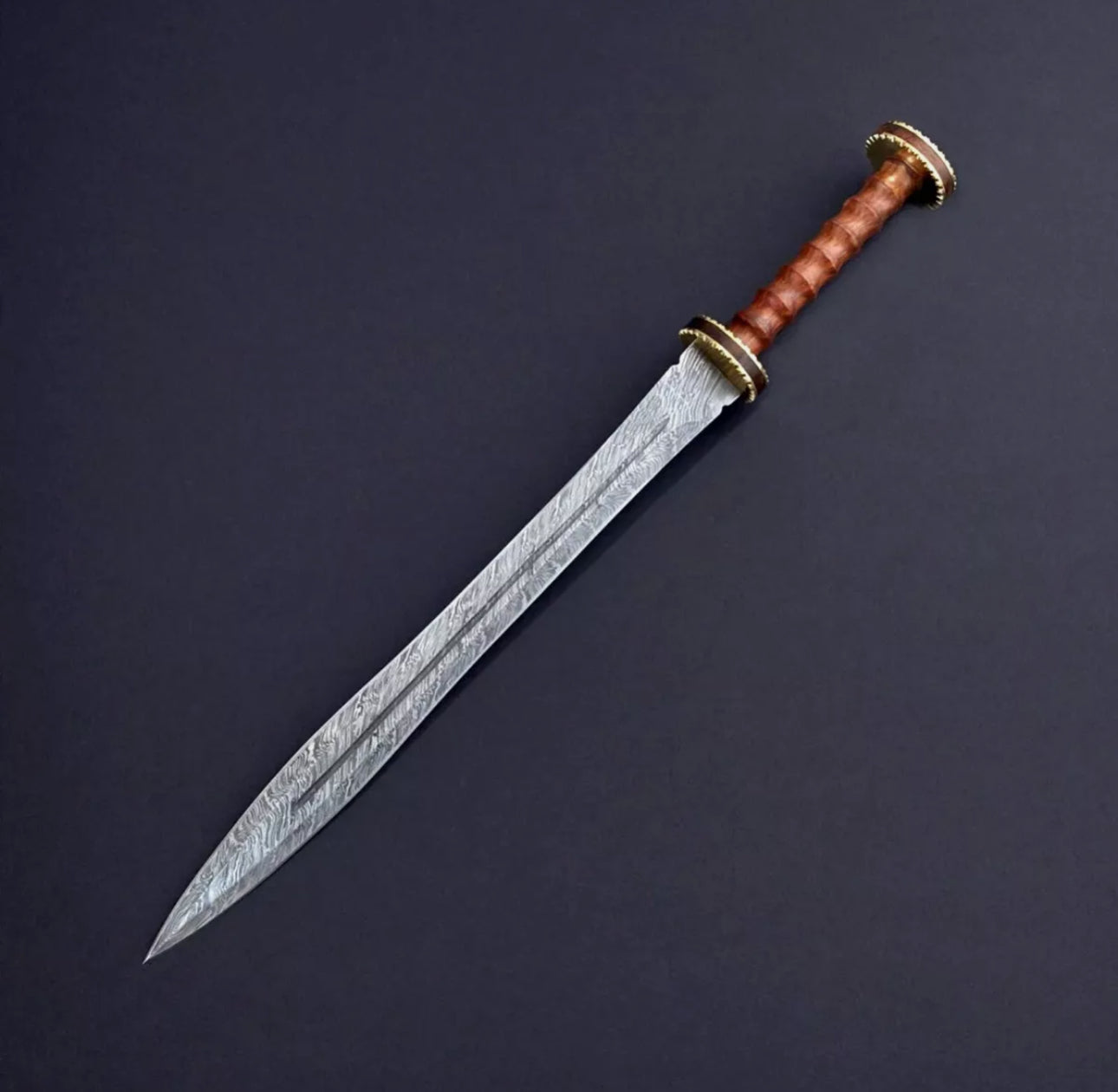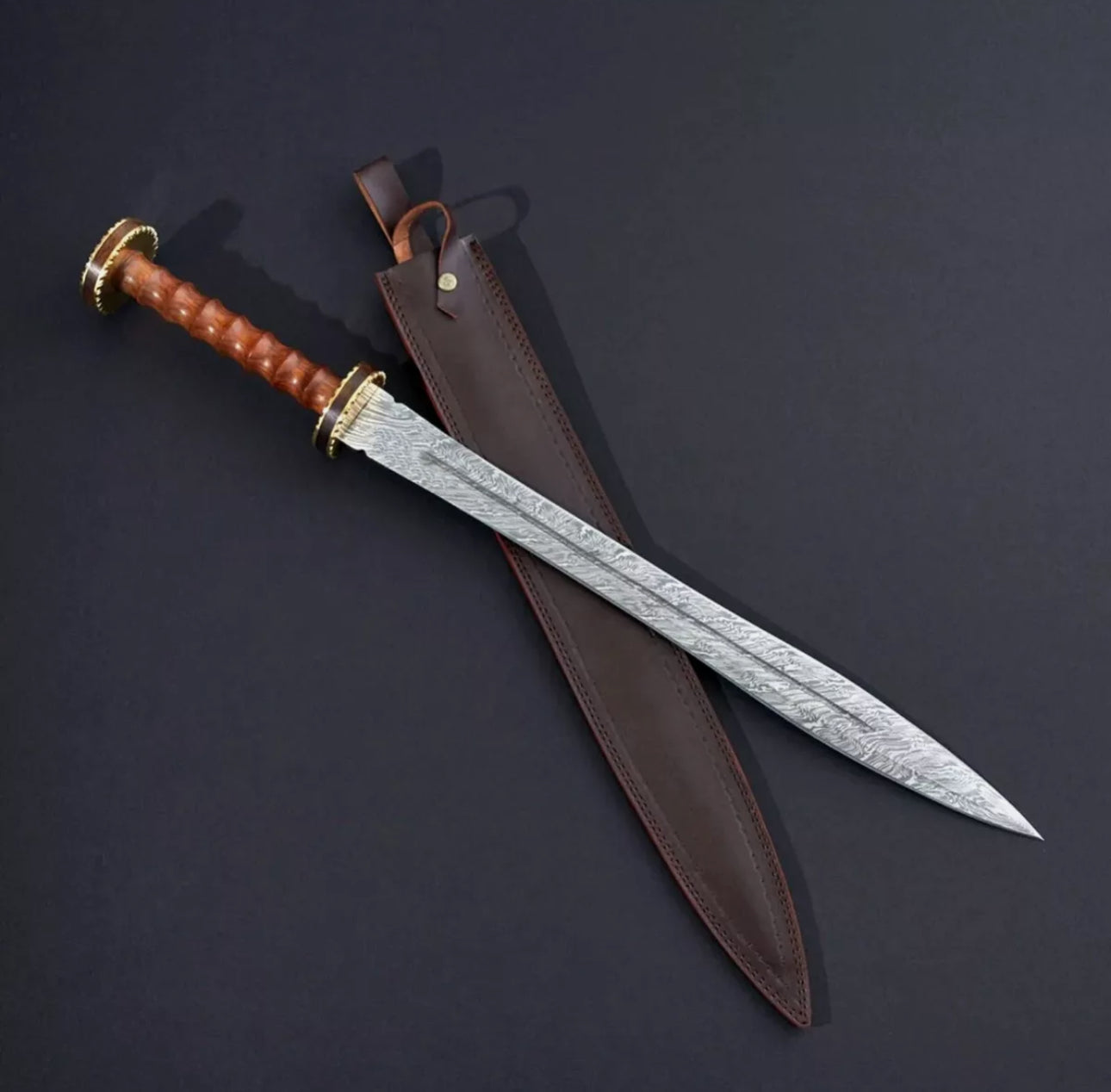 Custom Handmade Damascus Sword Wood Handle With Leather Sheath