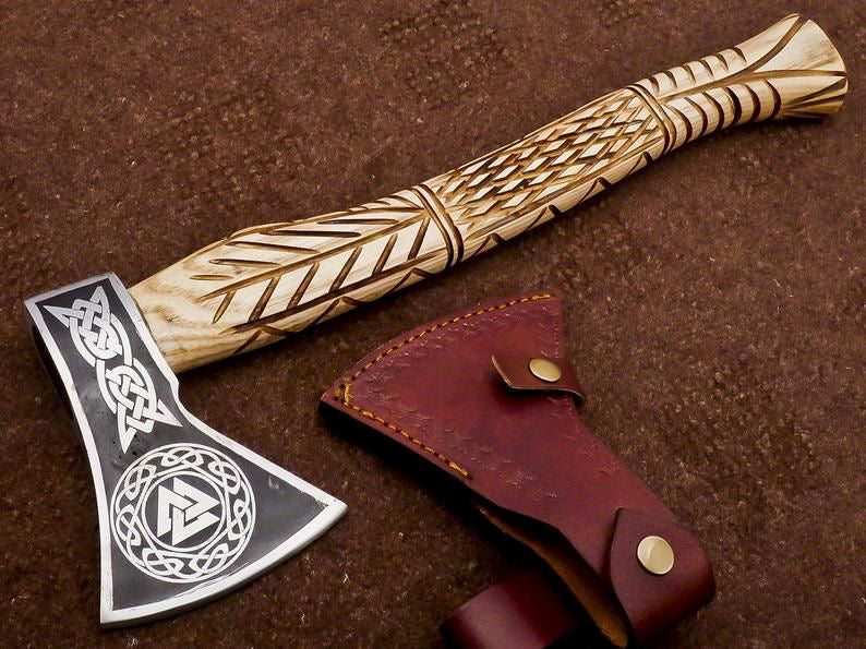 Custom Norse Viking Axe Hand Crafted Nordic Axe With Sheath