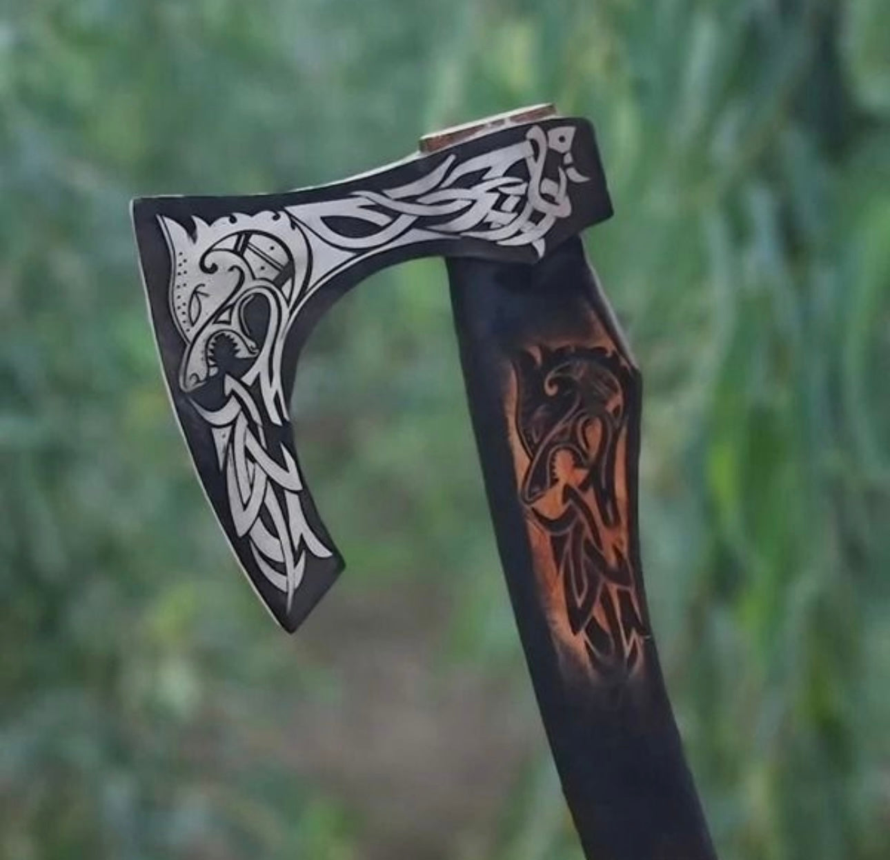 Custom Norse Viking Axe Hand Crafted Nordic Axe With Sheath
