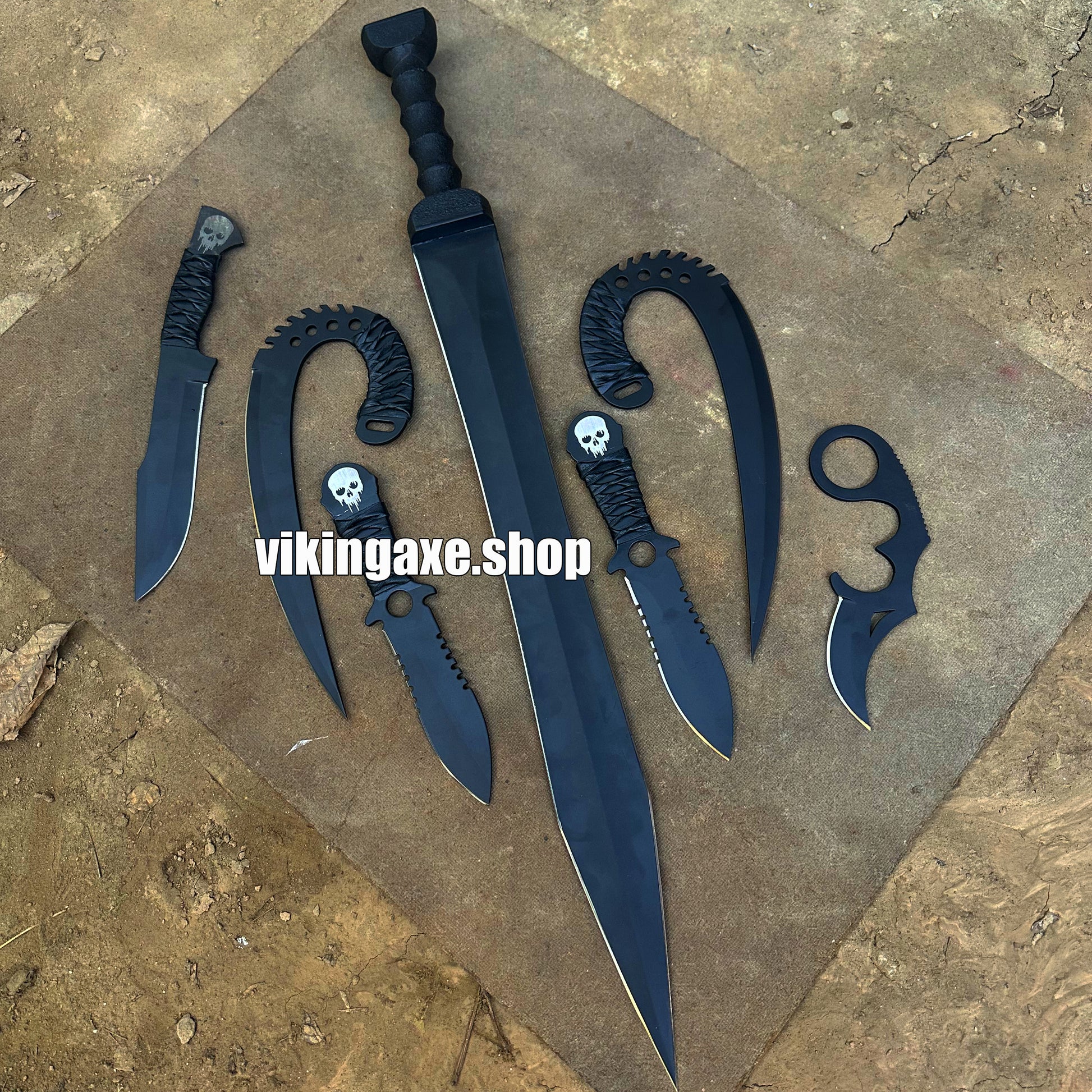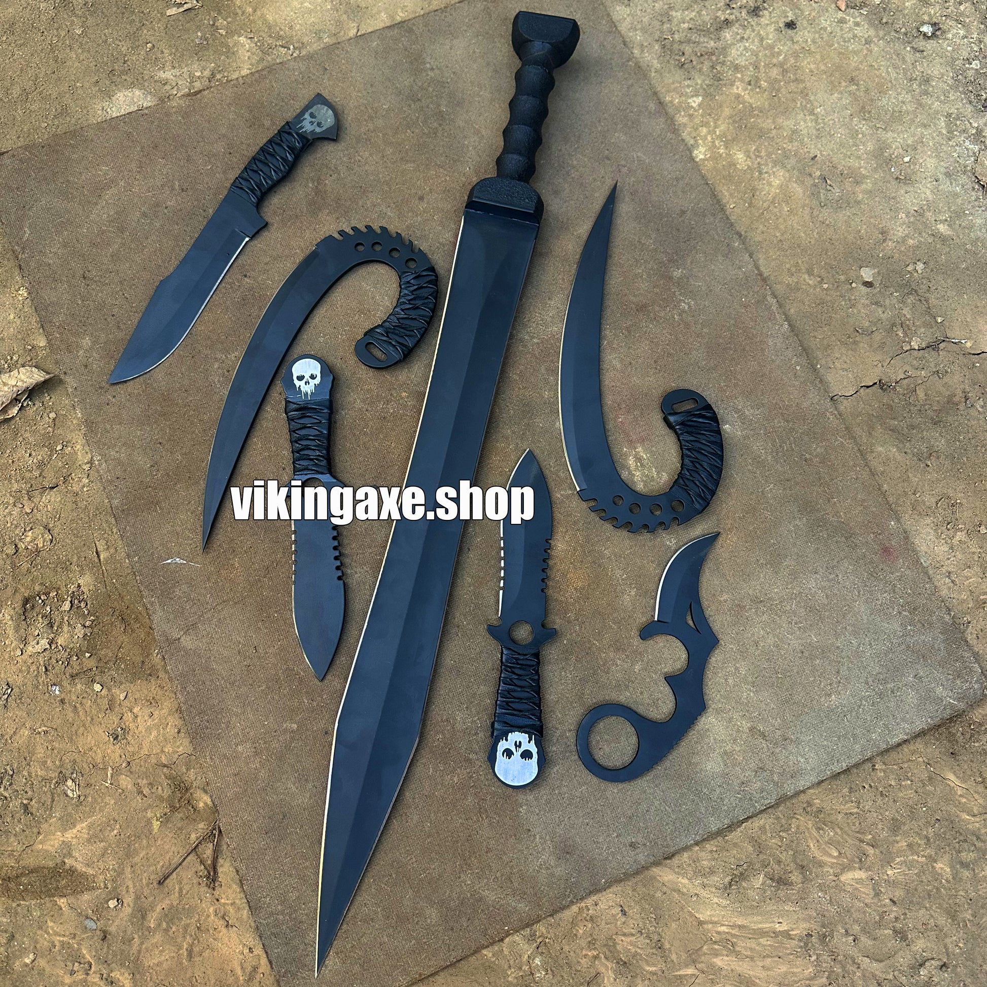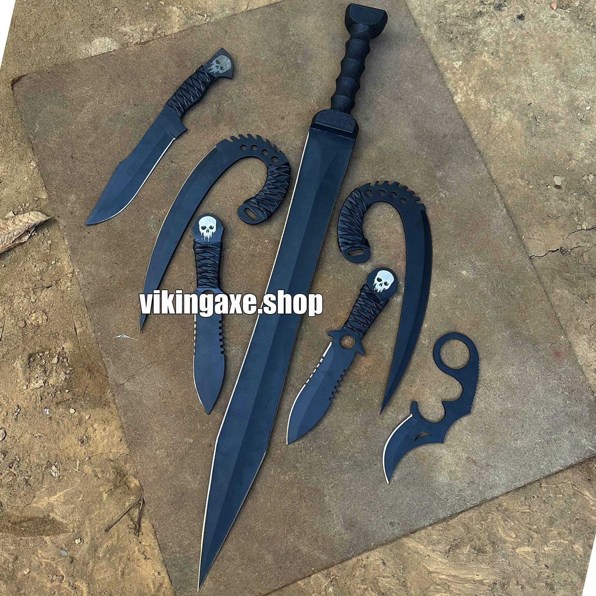 Custom Order 6 Pieces Sword And Knives Kit With Leather Sheath