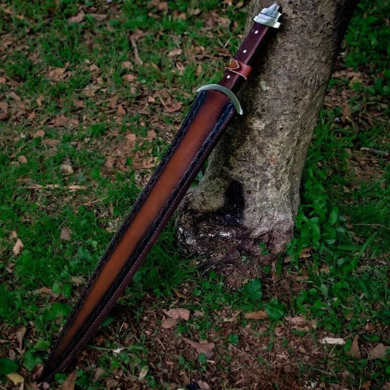 Custom Sword High Carbon Steel Viking Sword Rose Wood Handle With Sheath