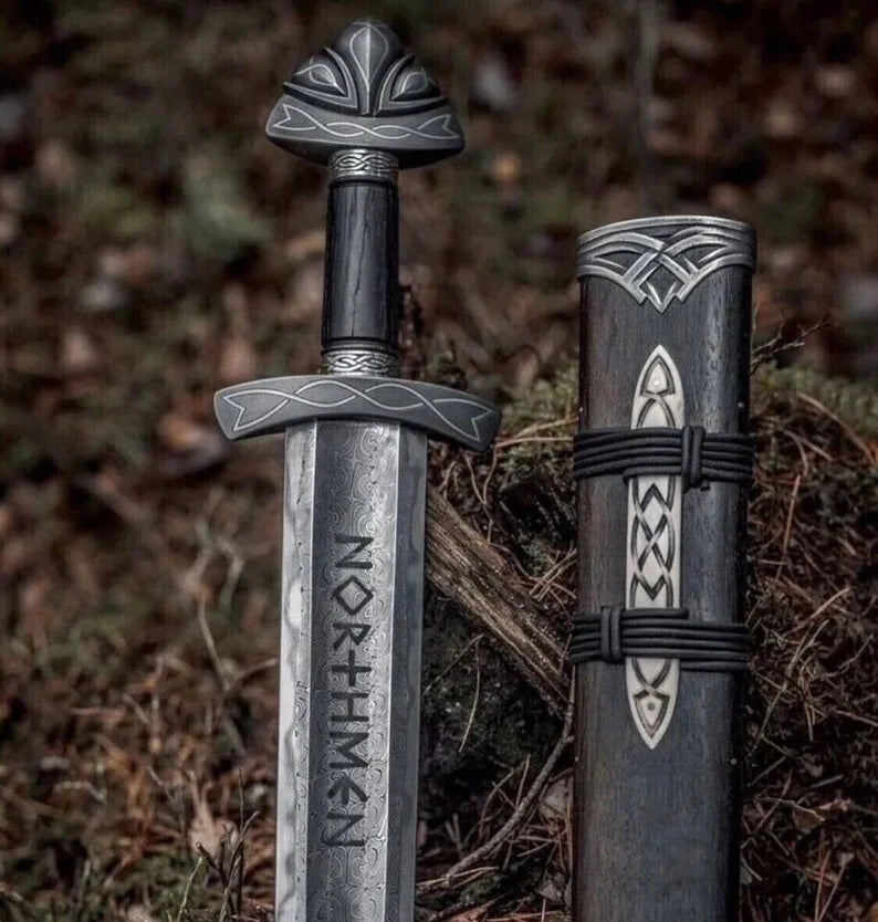 Custom Viking Sword Handmade Damascus Steel Sword Battle Ready Sword With Scabbard