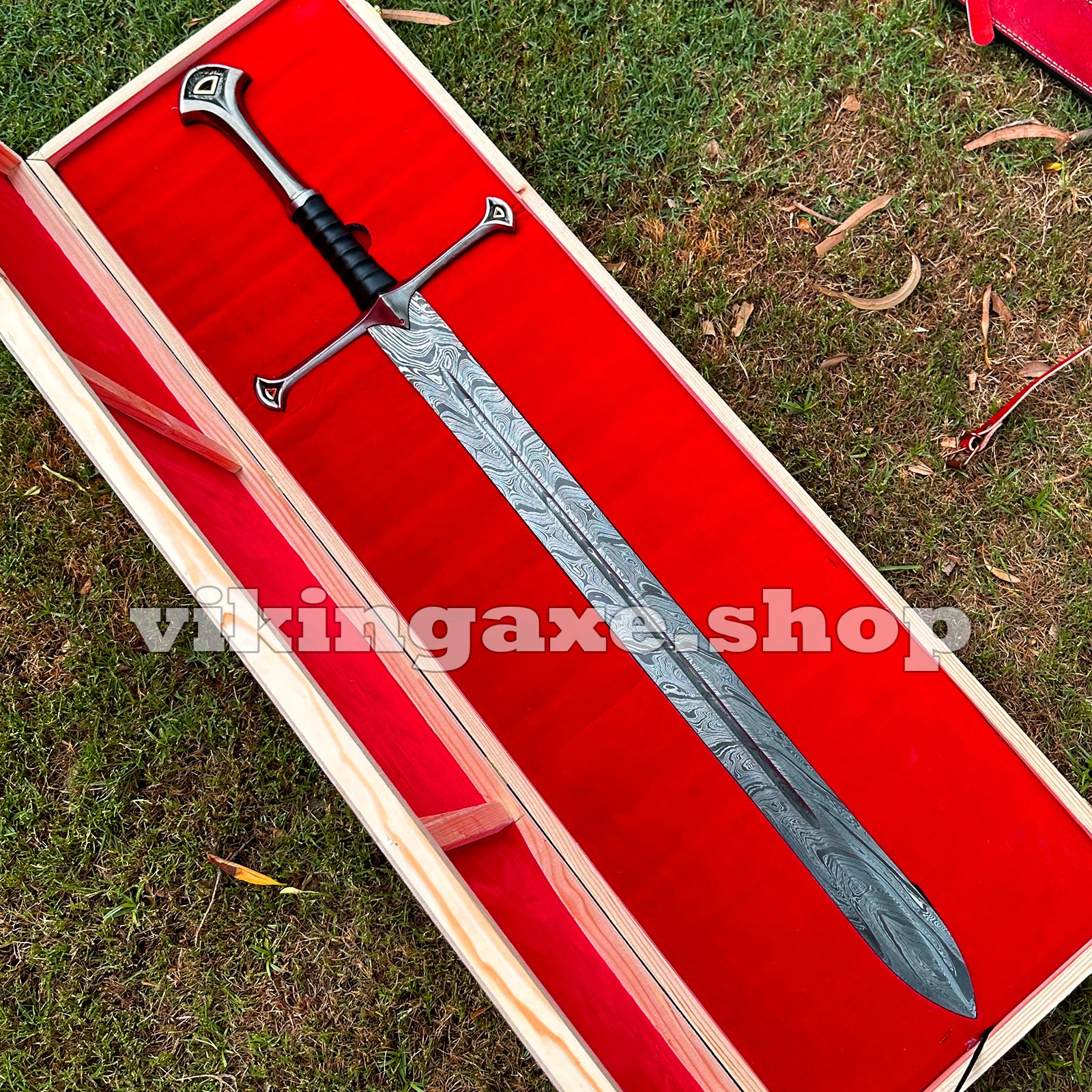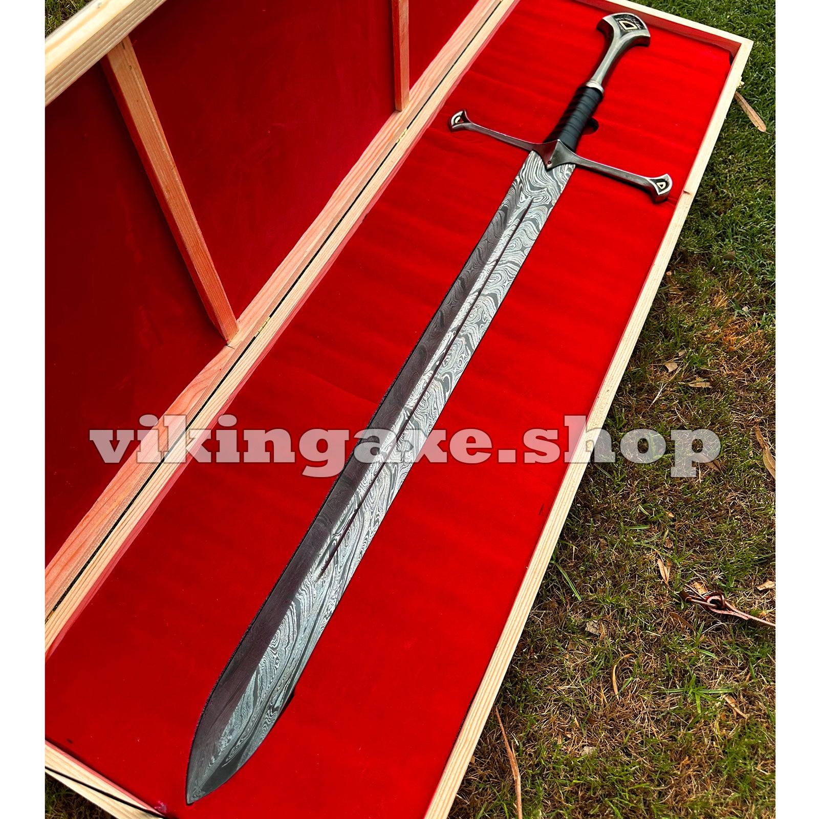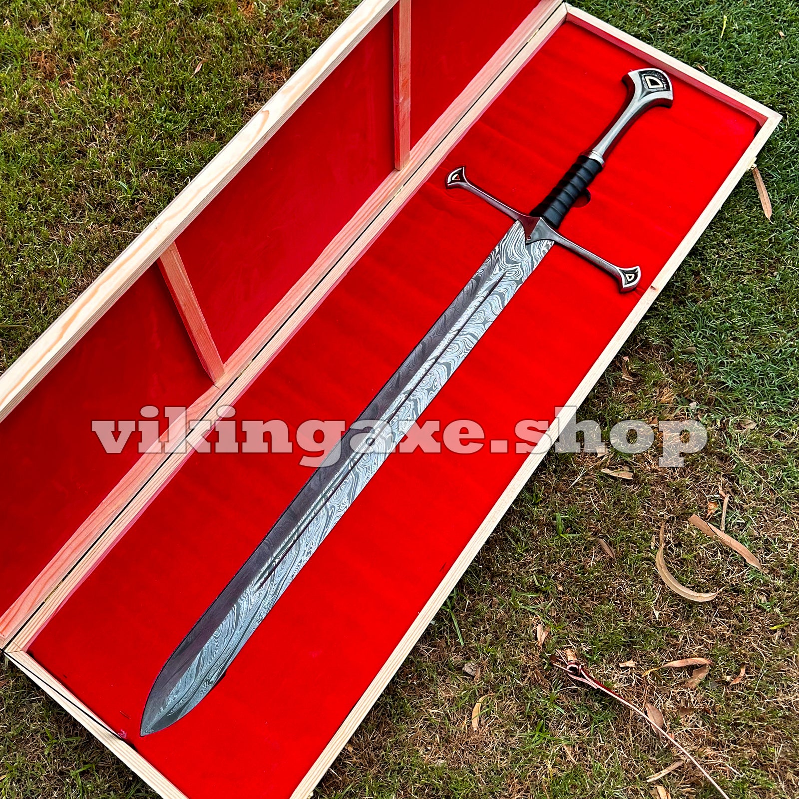 Handmade Sword Viking Sword Damascus Steel Blade Sword With Leather Sheath And Wooden Box