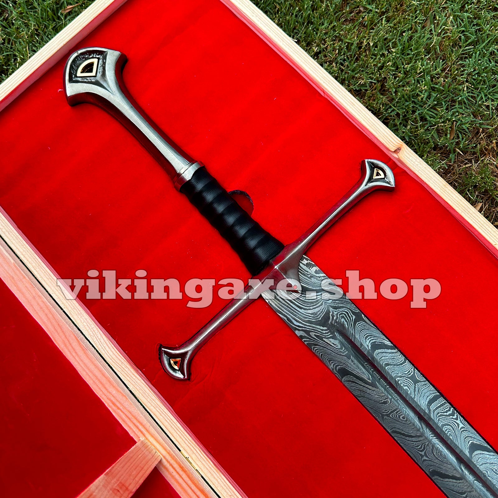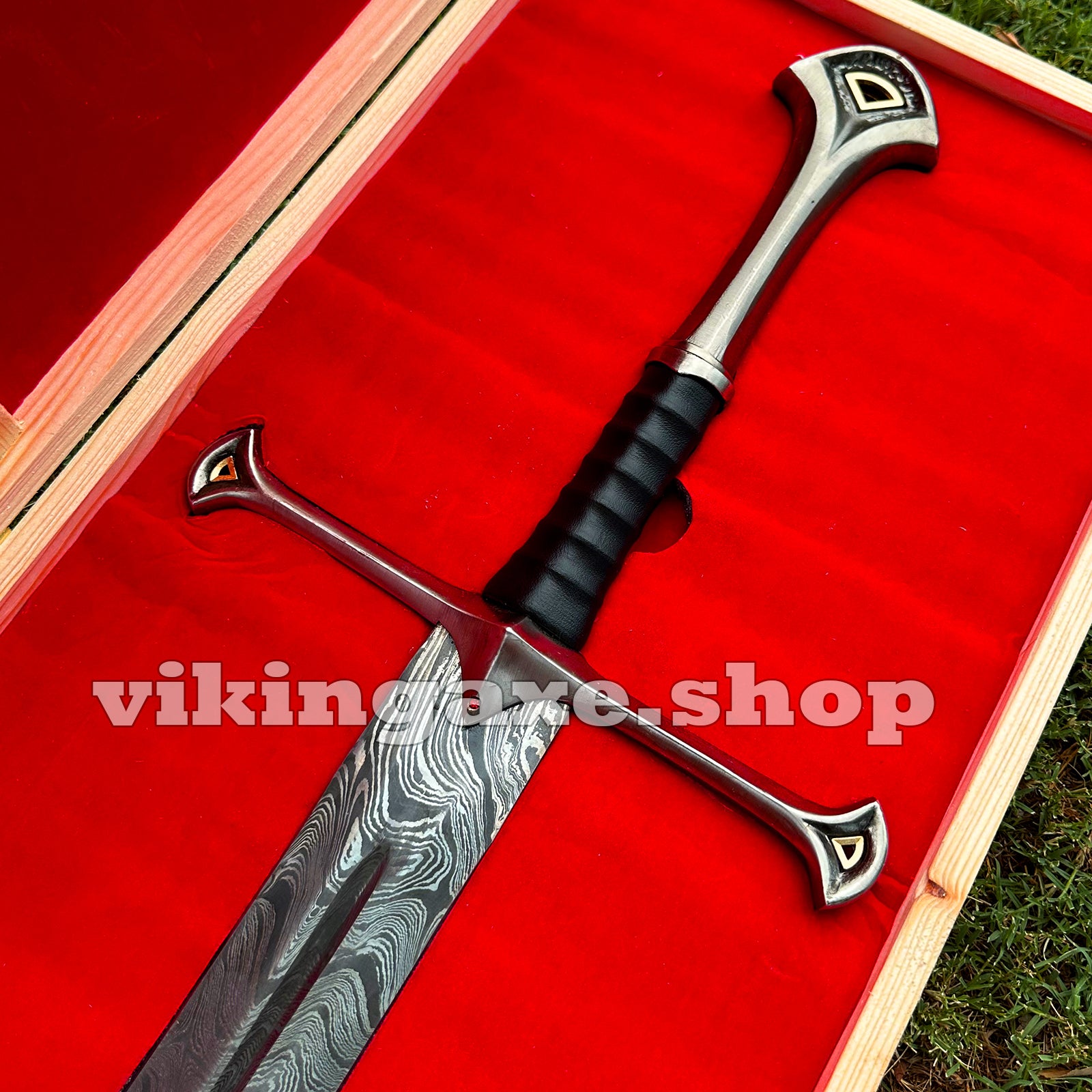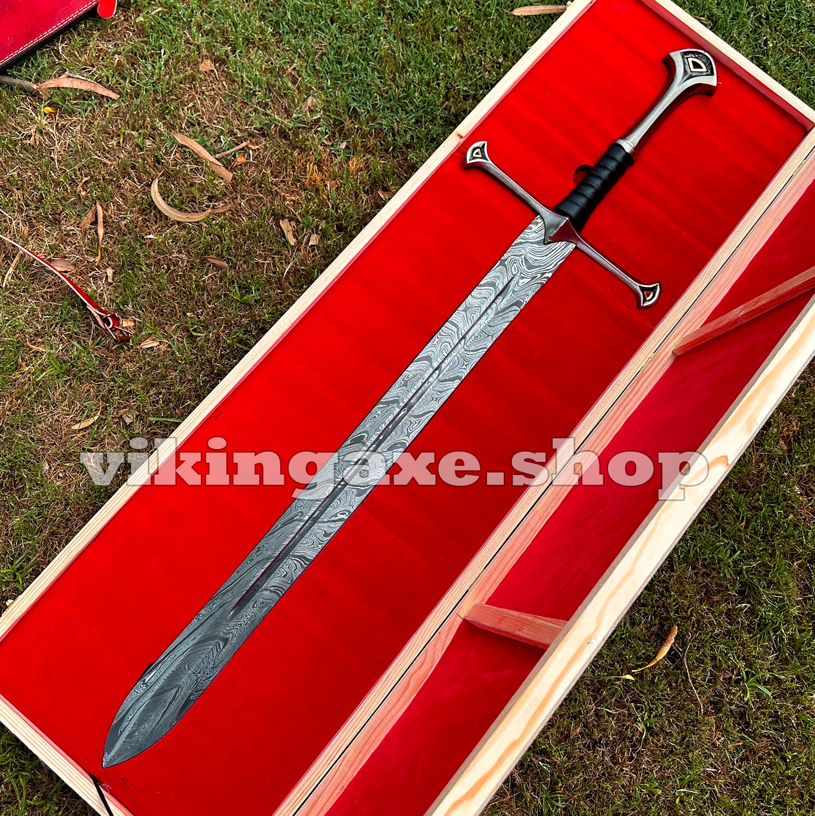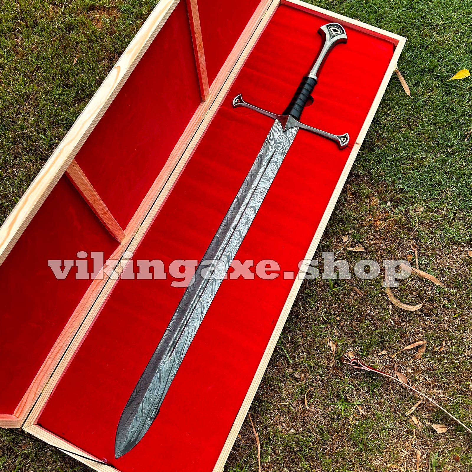 Handmade Sword Viking Sword Damascus Steel Blade Sword With Leather Sheath And Wooden Box