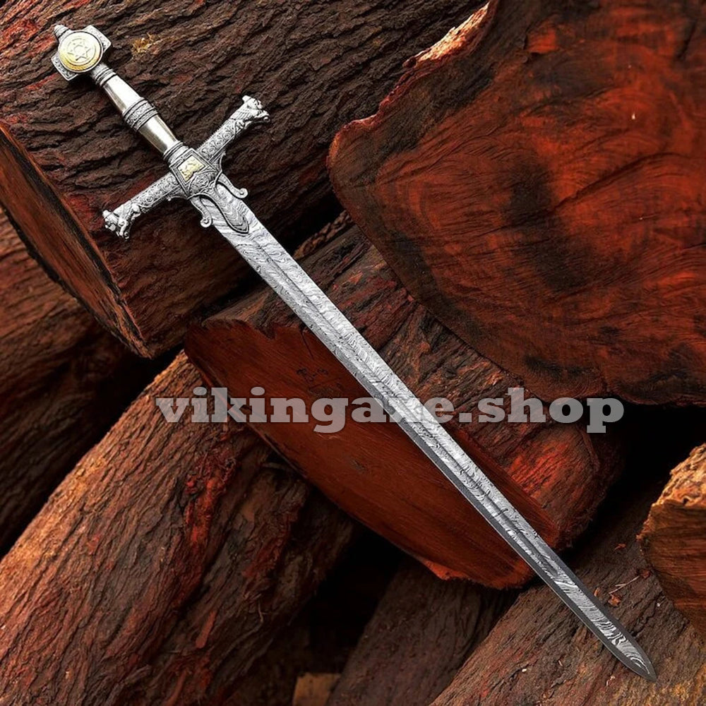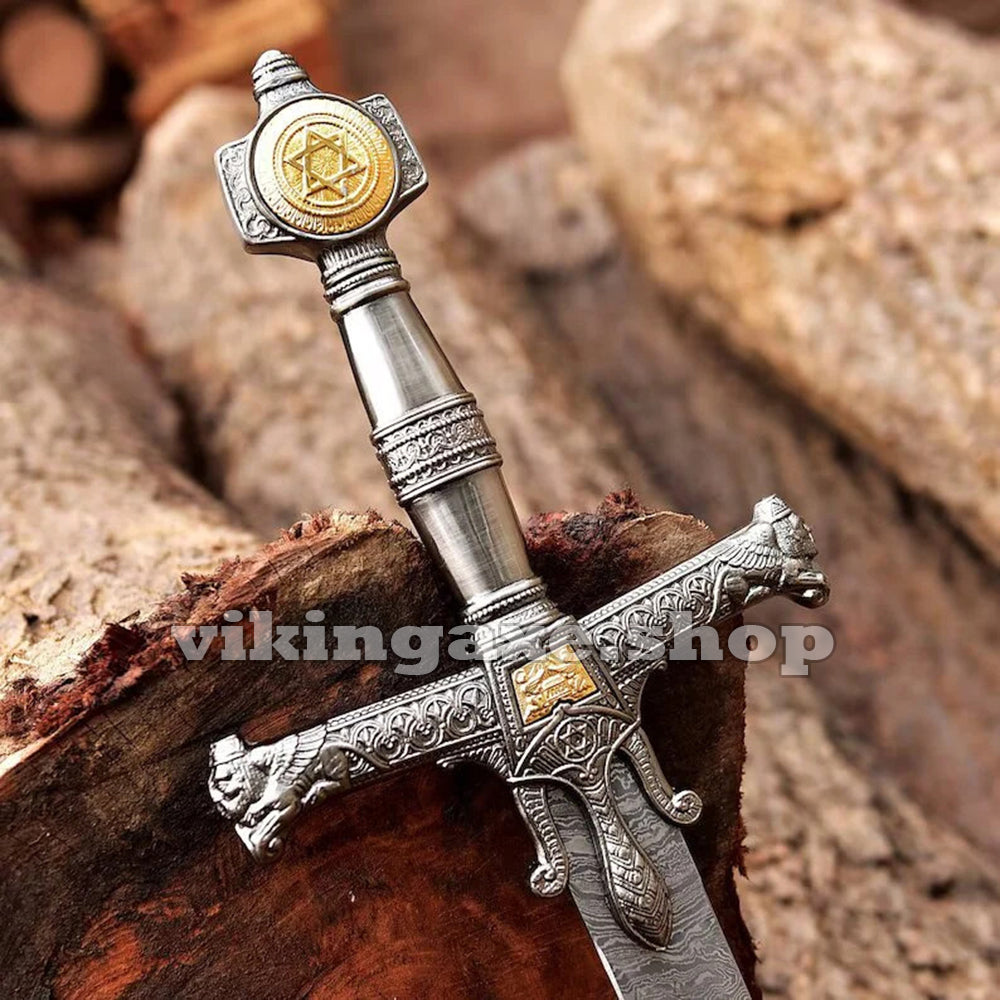 King Solomon Crusader Sword - Damascus Steel Sword With Leather Sheath