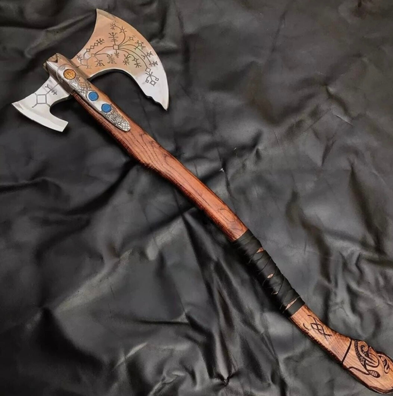 Custom Nordic Viking Axe Hand Crafted Axe Ash Wood Handle