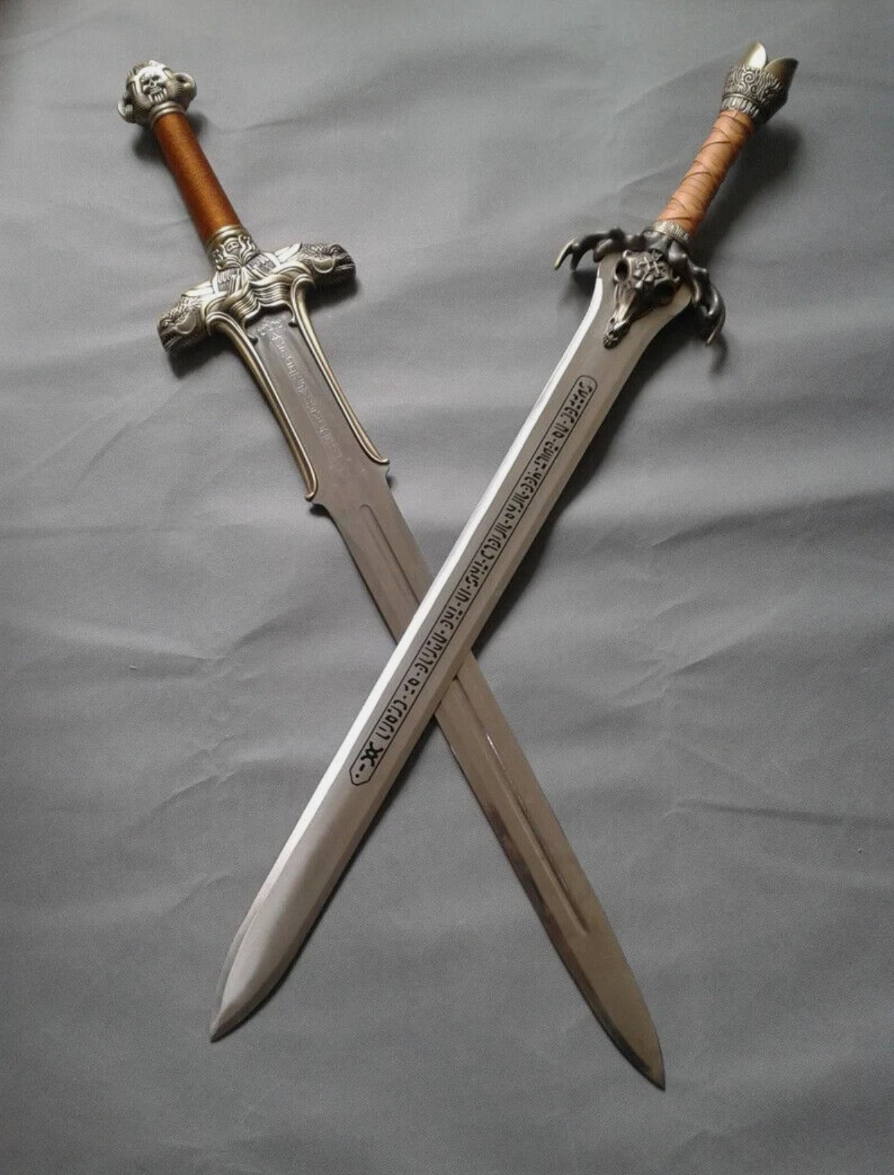 Pair Of Conan Destroyer Father's Sword Atlantean Sword King Cosplay With Leather Sheath