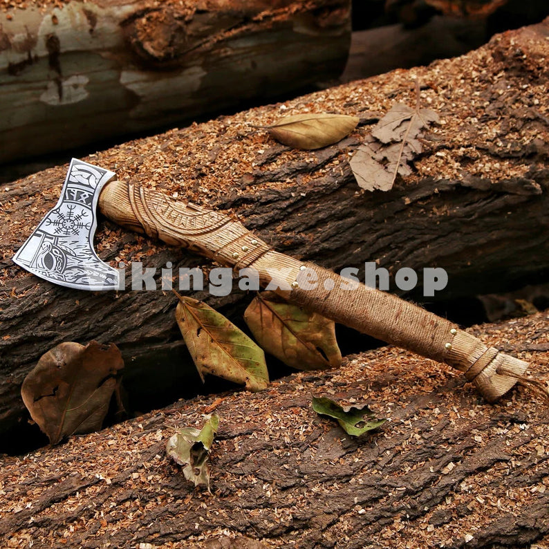 Custom Nordic Viking Axe Hand Crafted Axe Ash Wood Handle
