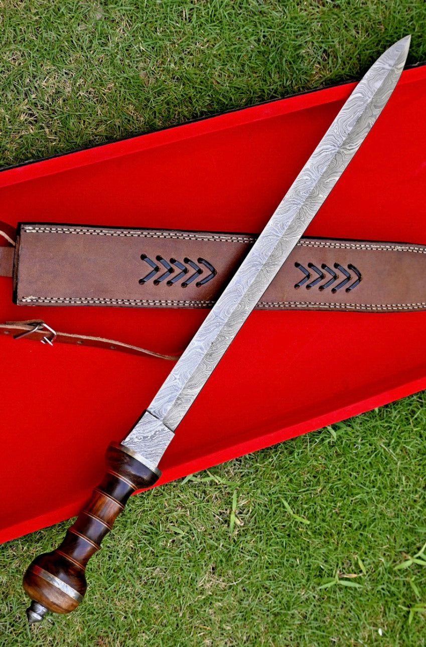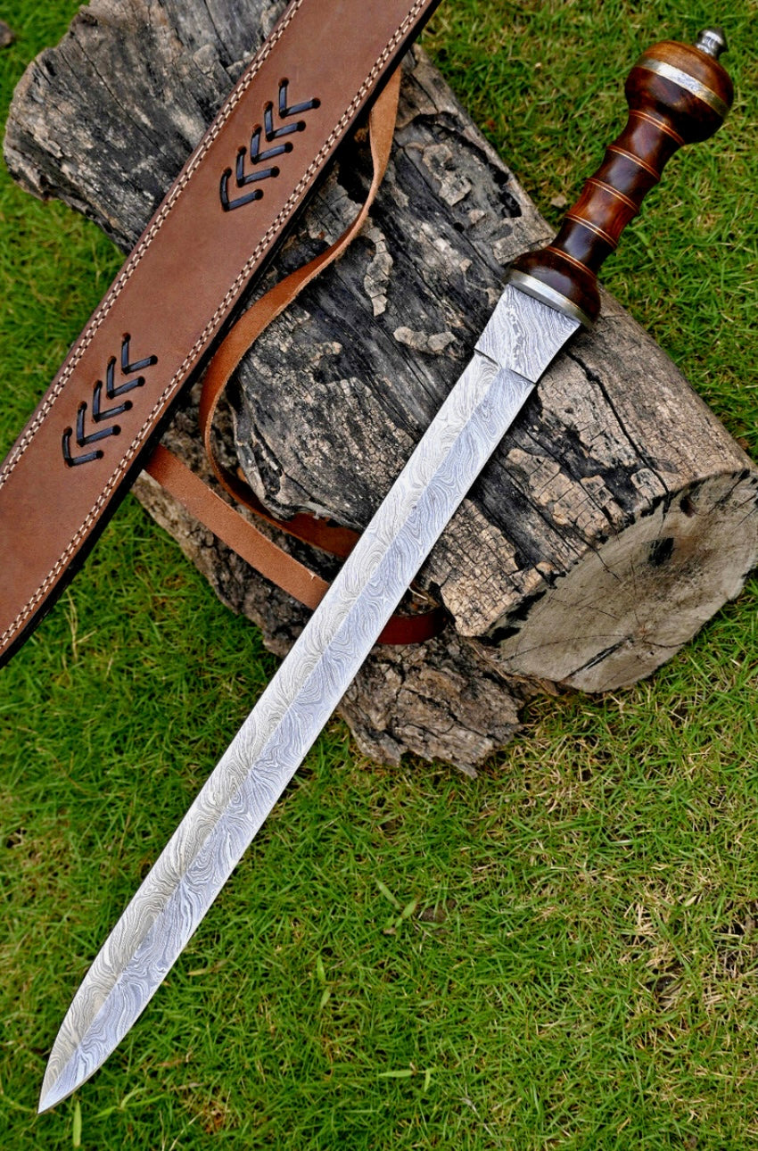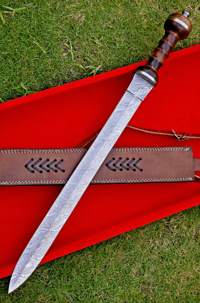 Roman Sword Damascus Steel Gladius Sword Rose Wood Handle With Leather Sheath