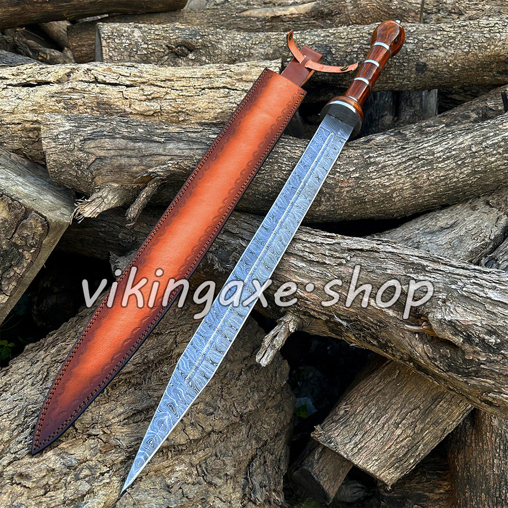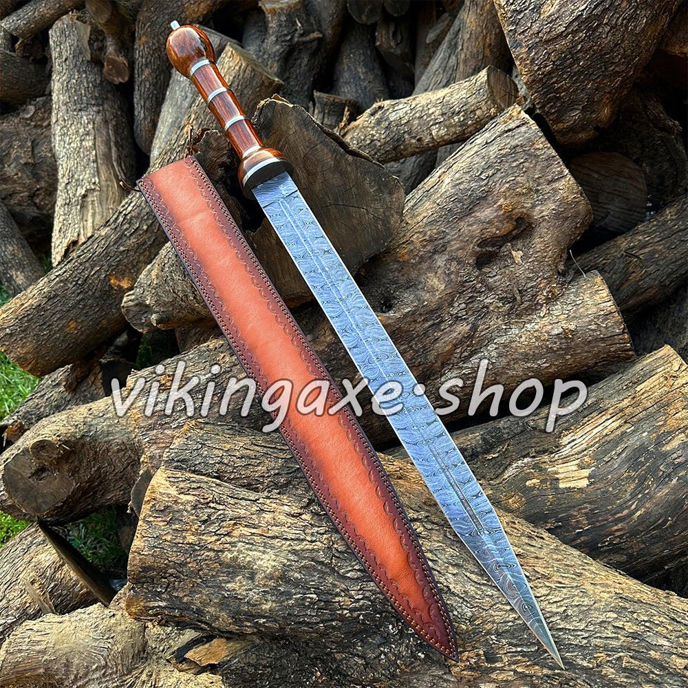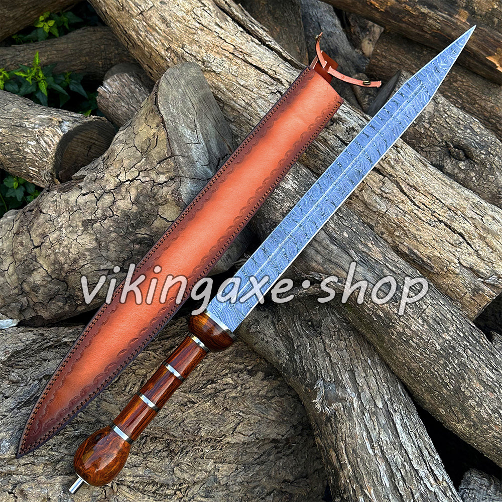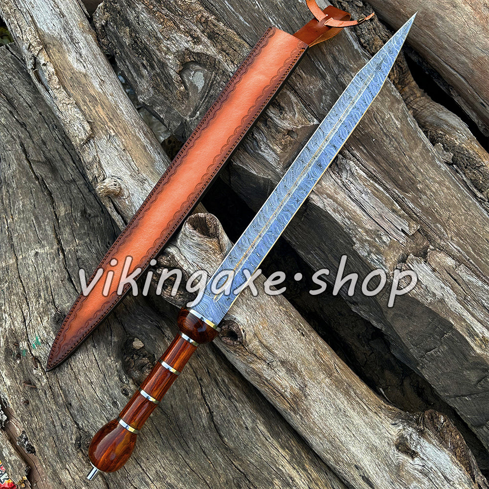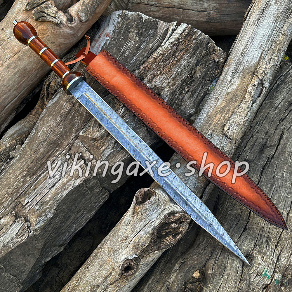 Roman Sword Gladius Sword Damascus Steel Sword With Leather Sheath