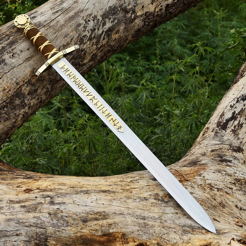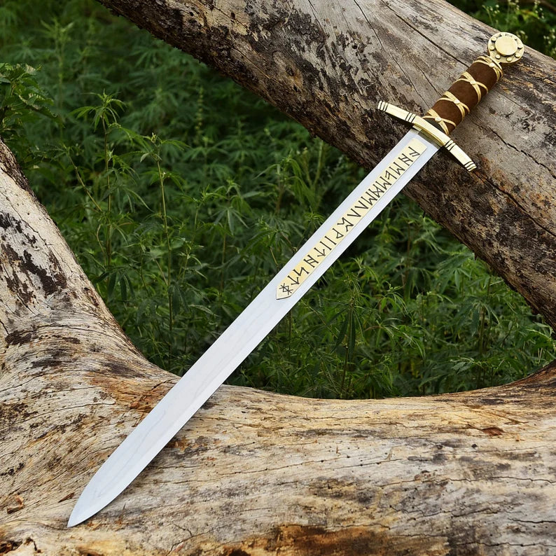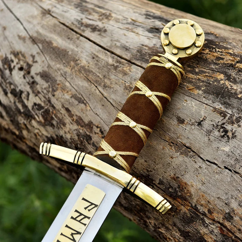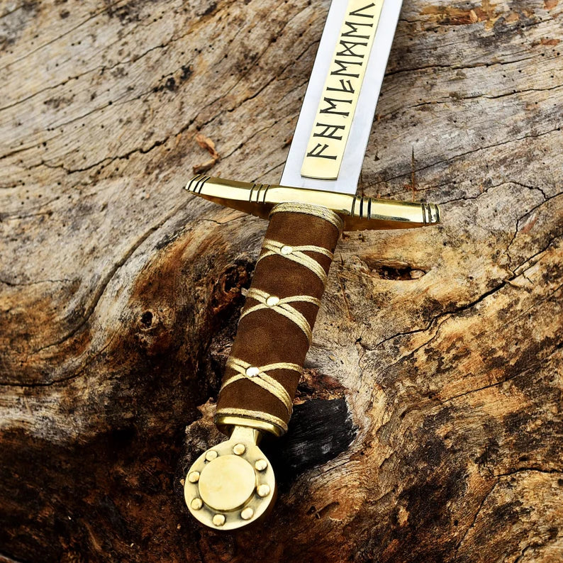 Viking Sword Stainless Steel Medieval Sword Brass Guard And Pommel With Leather Sheath